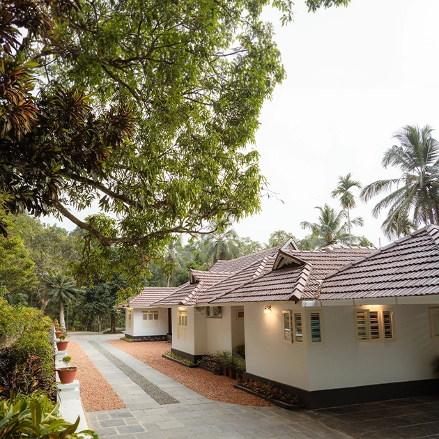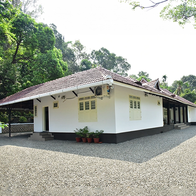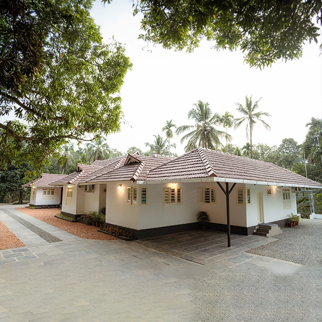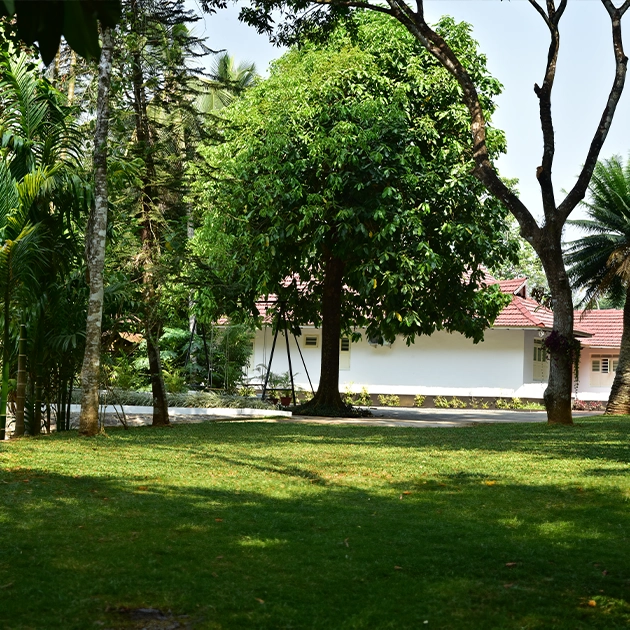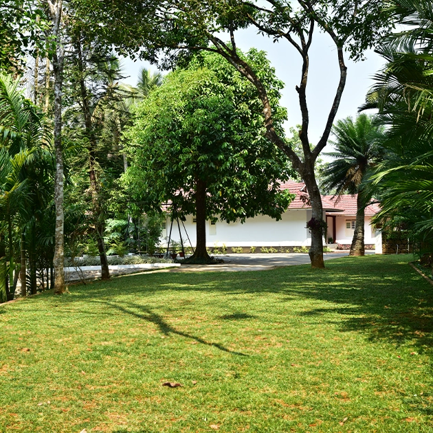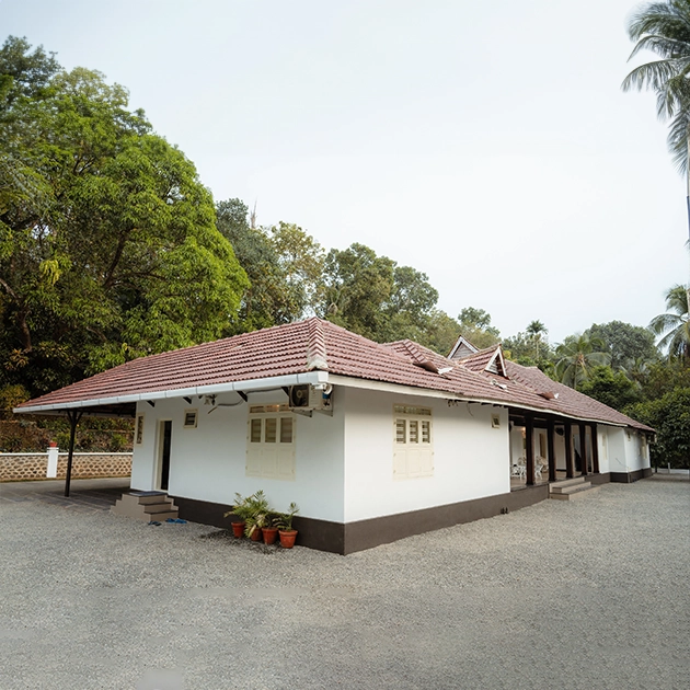 Nestled amidst nature, this serene space at the back of an antique house offers a tranquil setting for hosting events; surrounded by lush greenery, provides a picturesque backdrop that exudes an air of timeless elegance. The juxtaposition of the antique architecture against the vibrant coconut trees in the adjacent lush spice garden creates a harmonious blend of history and natural beauty. Whether it’s an intimate gathering or a celebratory occasion, this enchanting space invites guests to immerse themselves in its rustic charm and bask in the serenity of the outdoors.